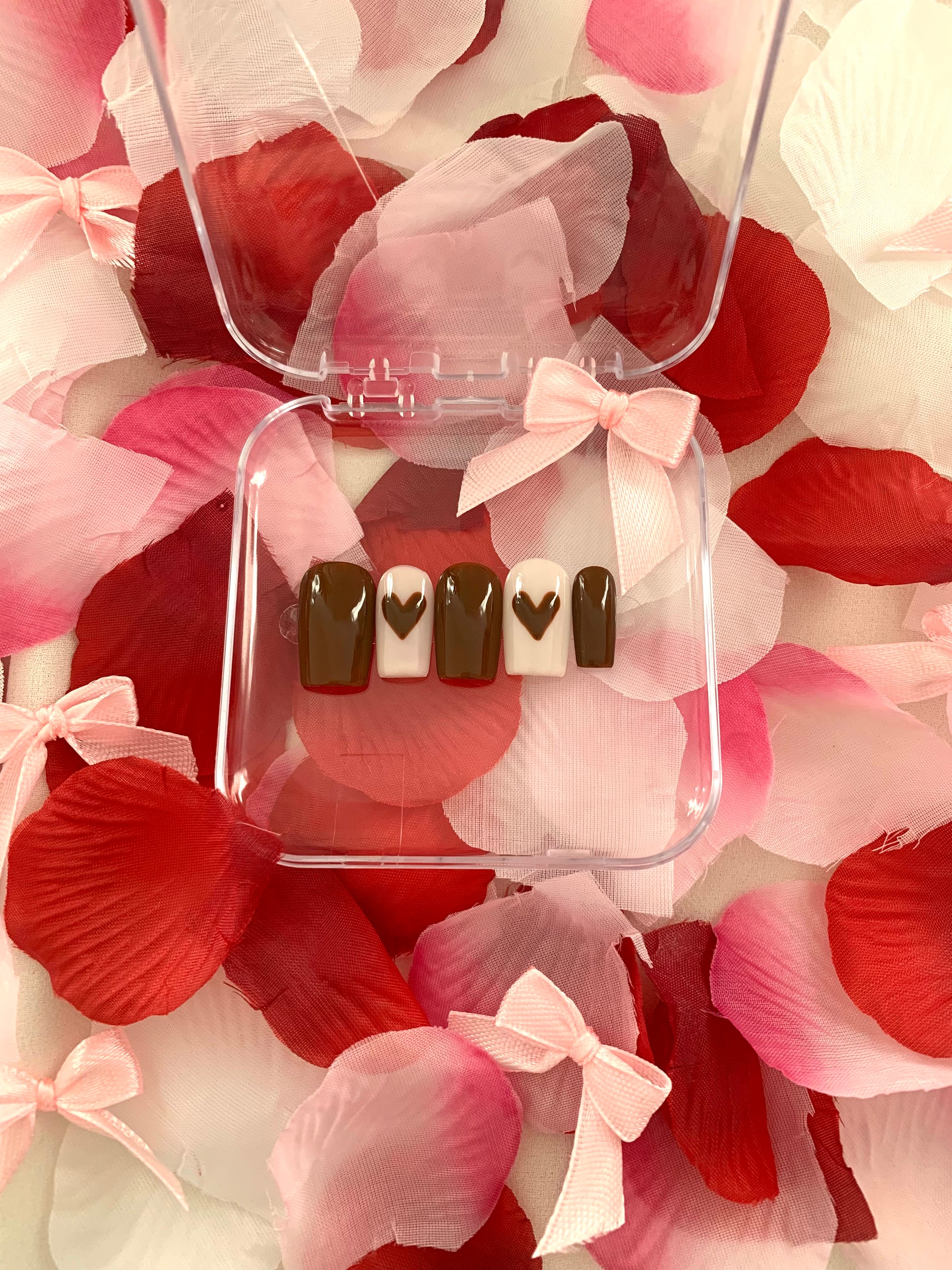 Laissez-vous tenter par Caramel crush, un set qui célèbre la Saint Valentin sous le signe de la gourmandise et du chic absolu. Avec ses nuances de chocolat au lait et de crème, ce modèle est une véritable déclaration de douceur pour vos mains.