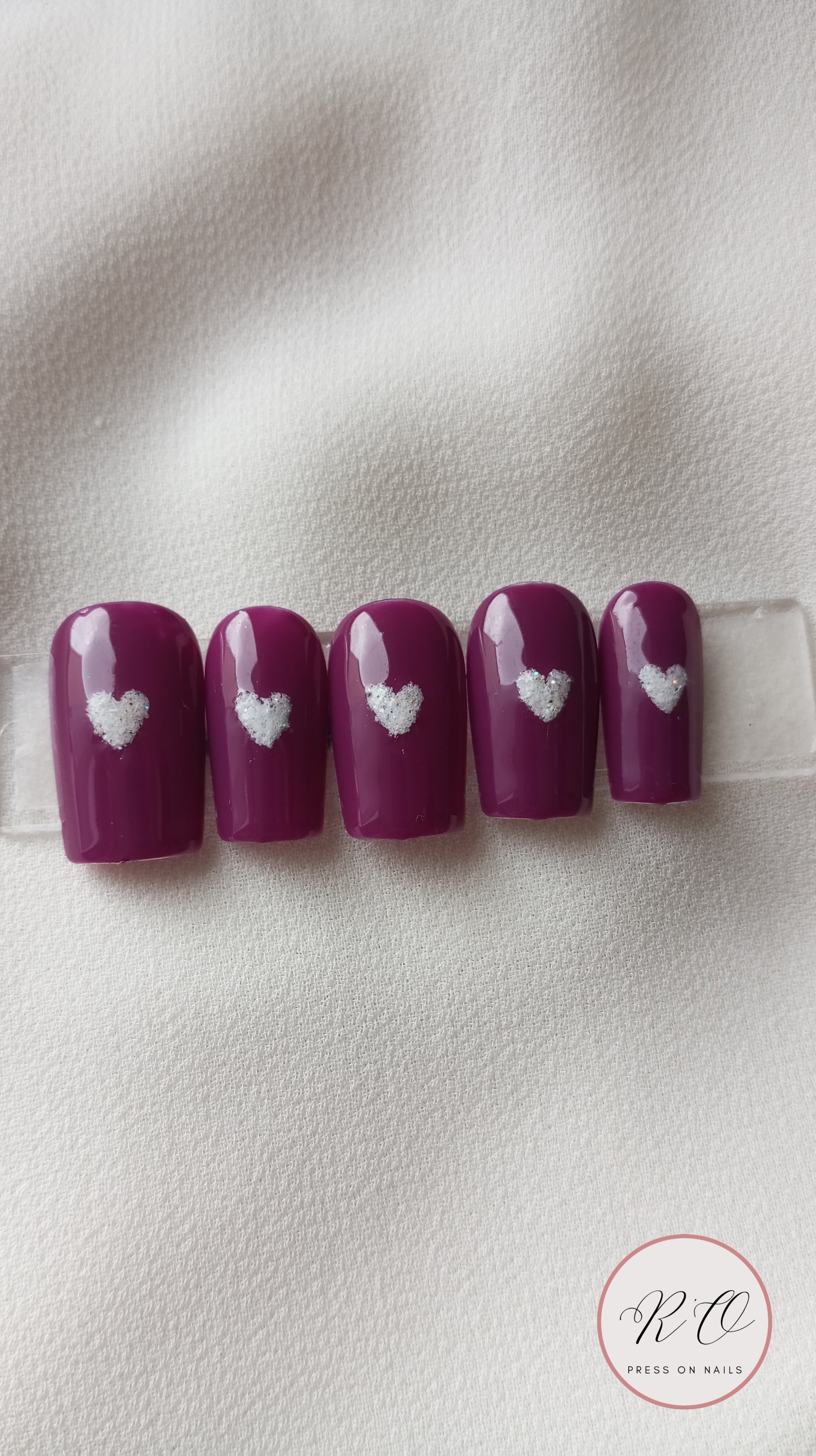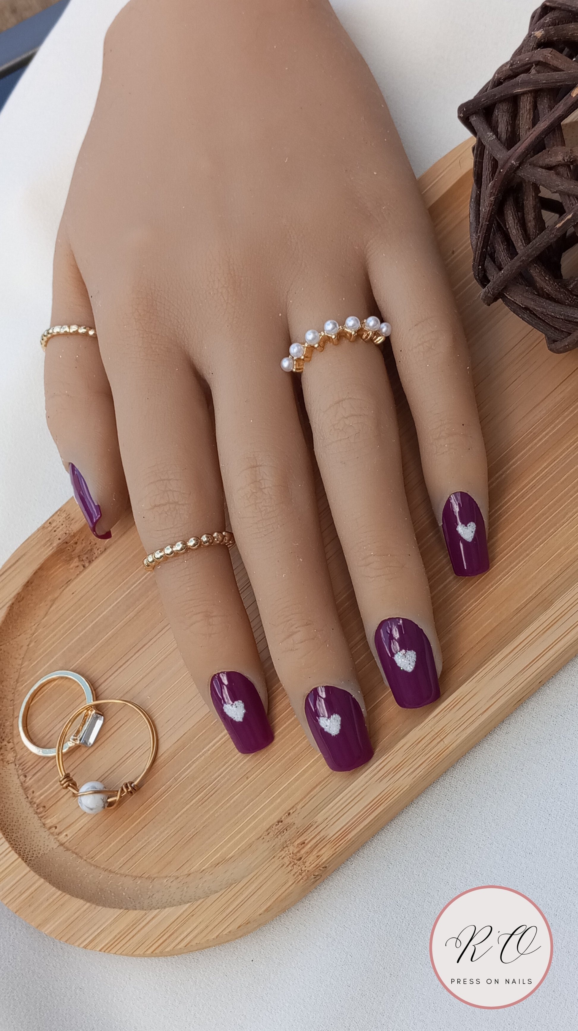 Ajoutez une touche de fantaisie à votre look avec le modèle Love bloom. Ces faux ongles violets sont ornés de petits coeurs en effet sucre pour une touche sucrée et élégante. Faciles à appliquer et à retirer, ces ongles vous feront briller de mille feux en toutes occasions !