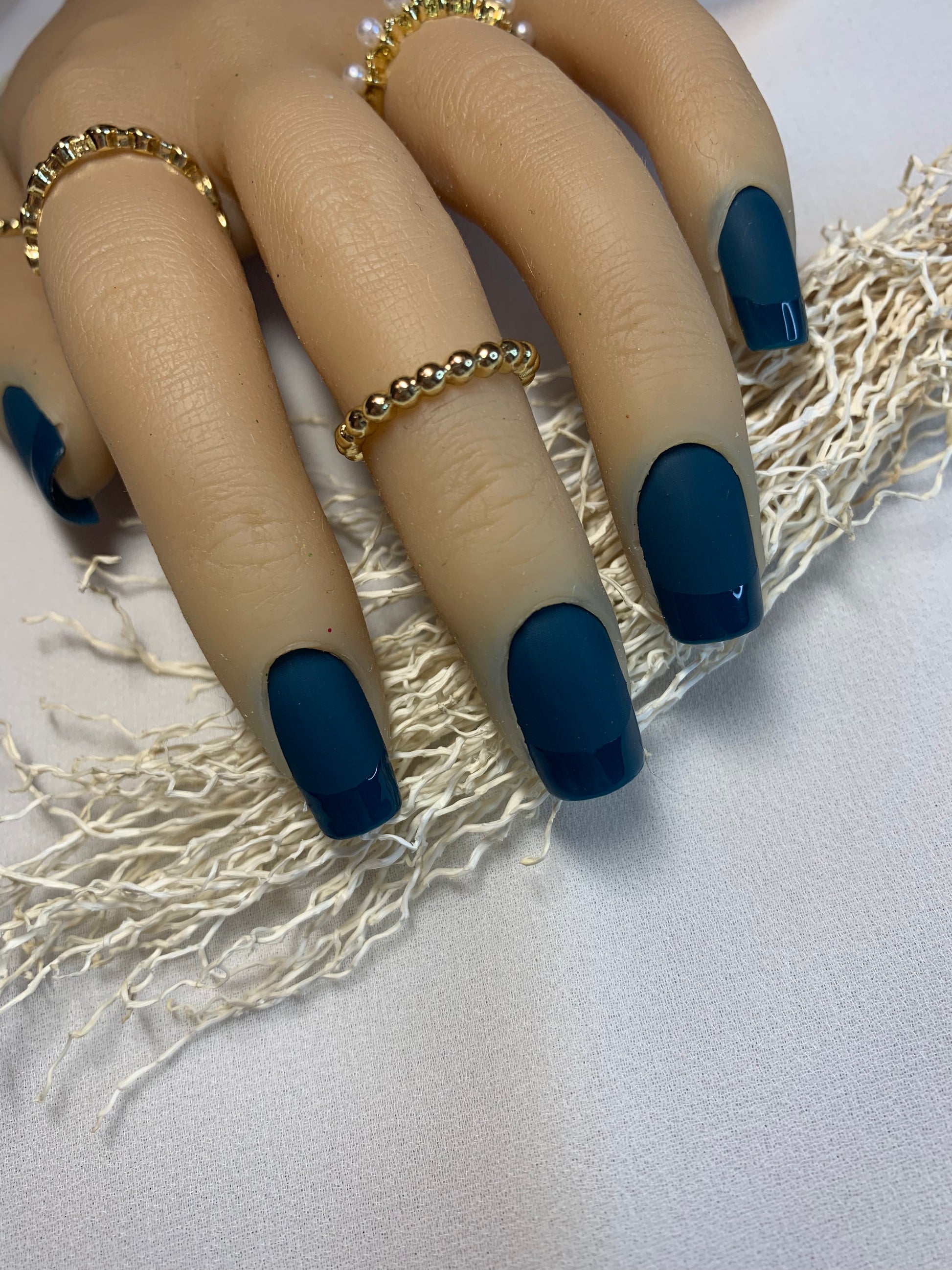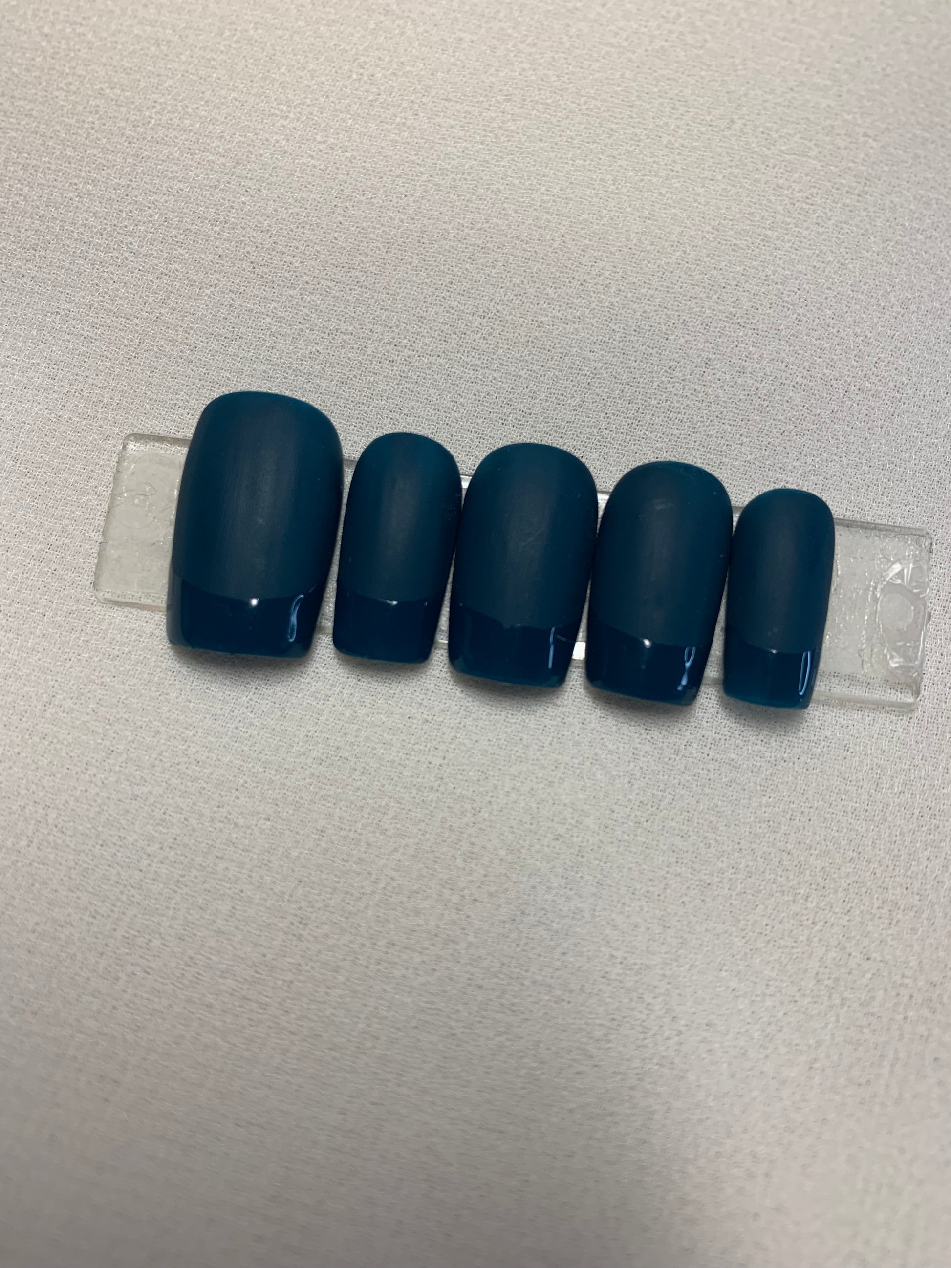 Apportez une touche moderne et sophistiquée à vos ongles avec ces faux ongles au design unique “French inversée”. Avec leur finition mate et leur élégante teinte bleu profond, ces ongles sont parfaits pour toutes les occasions, que ce soit une soirée chic ou un look quotidien raffiné.
