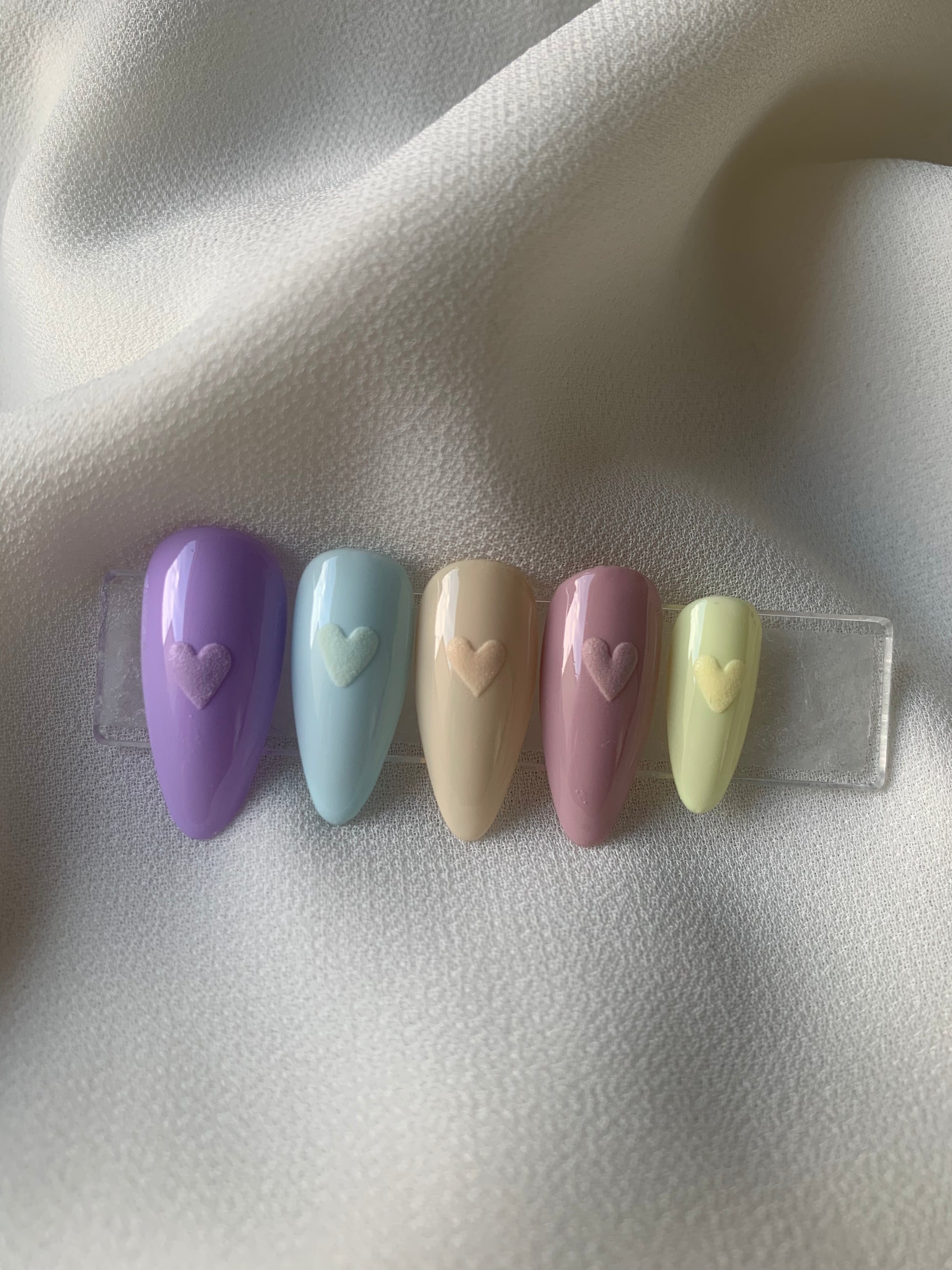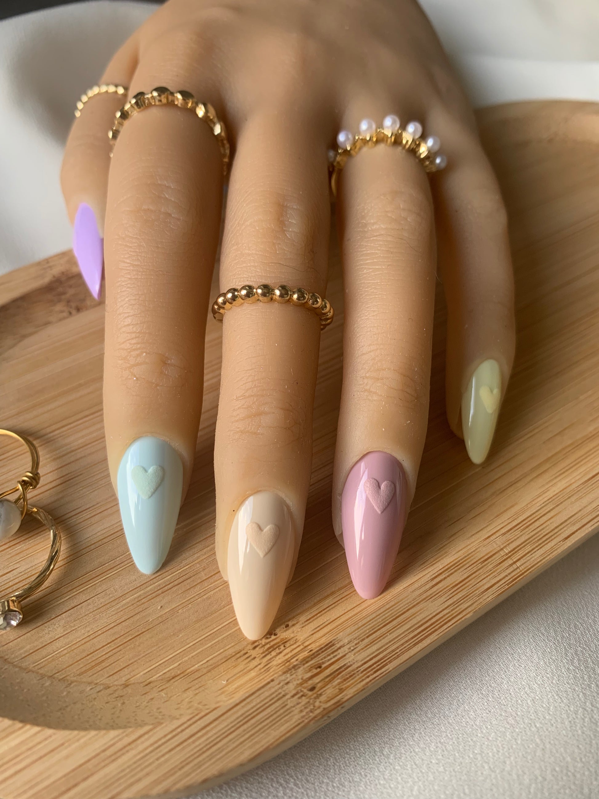 Le modèle Pastel love est là pour ajouter une touche d'amour et de douceur à votre look avec ses faux ongles aux couleurs pastels et son cœur en acrylique. Montrez votre côté romantique et apportez un peu de fantaisie à votre manucure grâce à ce modèle unique.