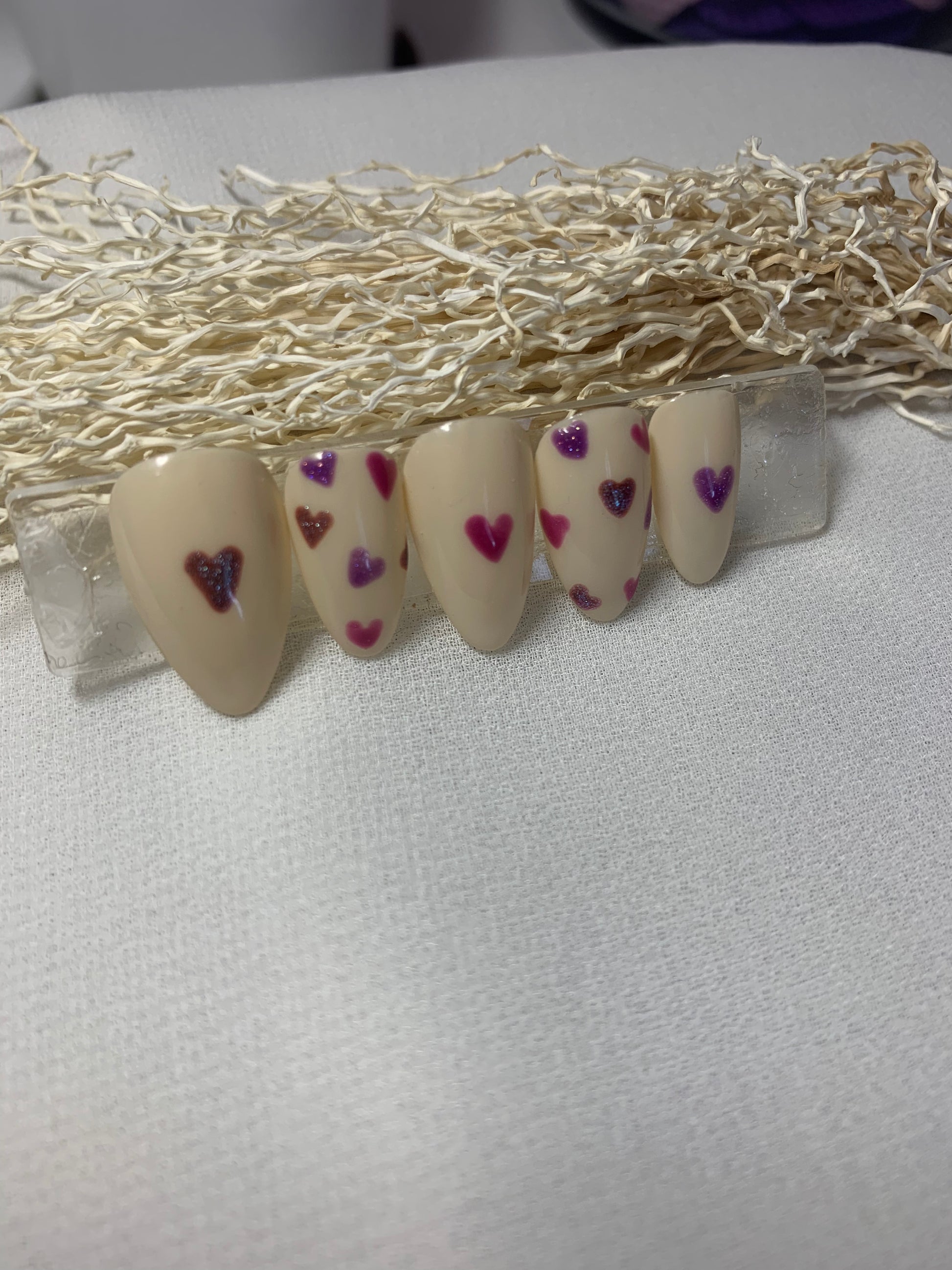 Découvrez notre modèle Love confetti ! Ces faux ongles beige ornés de petits coeurs scintillants donneront à vos mains un look élégant et amusant. Vous serez sûre de faire tourner les têtes et d'ajouter une touche de glamour à votre tenue. Parfaits pour toutes occasions, ces ongles vous feront sentir confiante et féminine.