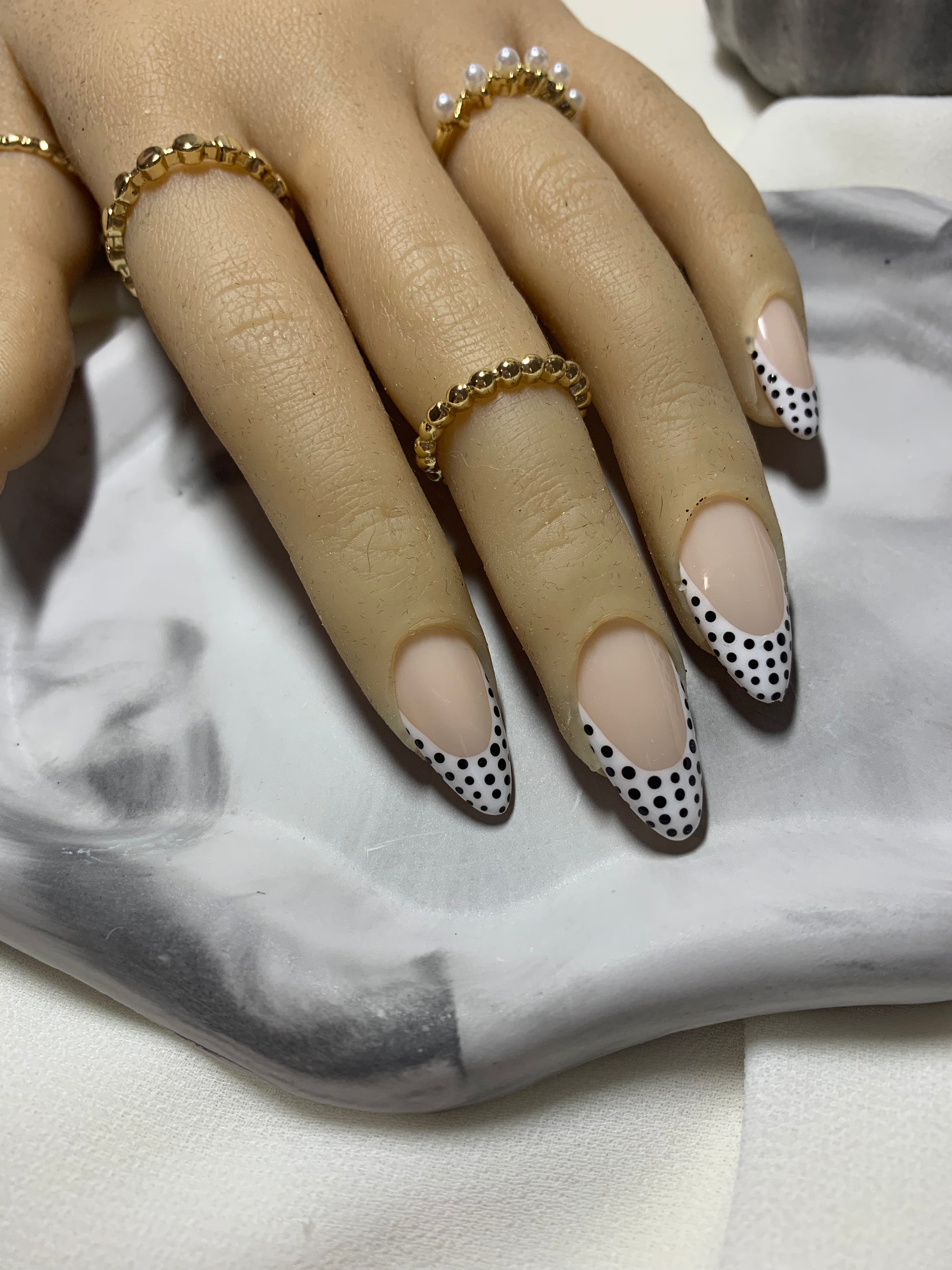 Motif : Pois sur French Manucure noire et blanche (un Nails Art audacieux).